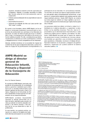 En cuanto a los tribunales, desde ANPE-Madrid se ha rei- terinidad en el sistema educativo y a garantizar la esta-