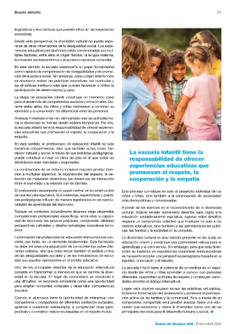 Uno de los principales desafíos de la educación intercultural La escuela infantil tiene el potencial de convertirse en un espa-
