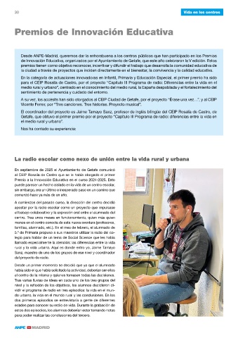 para el CEIP Rosalía de Castro, por el proyecto “Capítulo III Programa de radio: Diferencias entre la vida en el
